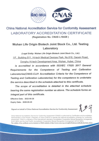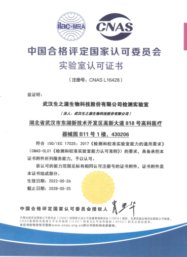 喜報!武漢凡華生物技術有限公司檢測實驗室取得CNAS認可證書
