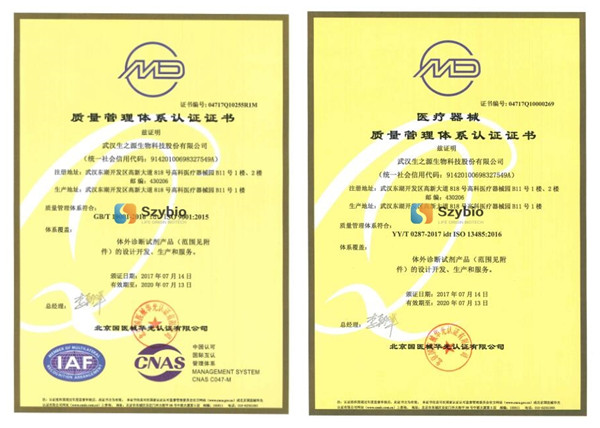 日前,生之源傳來喜訊——正式通過(guò)北京國(guó)醫械華光認證有限公司ISO 9001:2015質量管理體系認證和ISO 13485:2016醫療器械質量管理體系認證!這(zhè)是國(guó)際标準和行業市場對(duì)生之源的進(jìn)一步認可,标志着生之源的質量管理水平邁上了一個新台階、進(jìn)入一個新階段!生之源也成(chéng)爲國(guó)内最早的一批獲得ISO13485:2016認證的企業。
